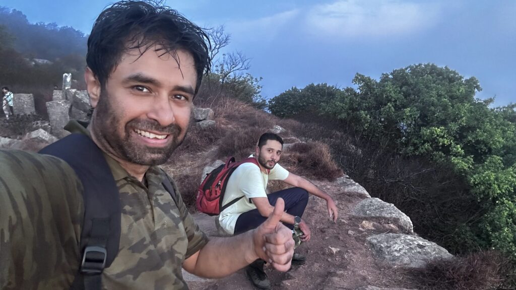 From the base to the peak of the mountain is about 4 Km. Honestly, we slightly underestimated the trek assuming it would be a cake walk. The trail is quite rocky, rugged and undulating for most part of the journey. Some sections of the trek have a steep incline which adds to the challenge.