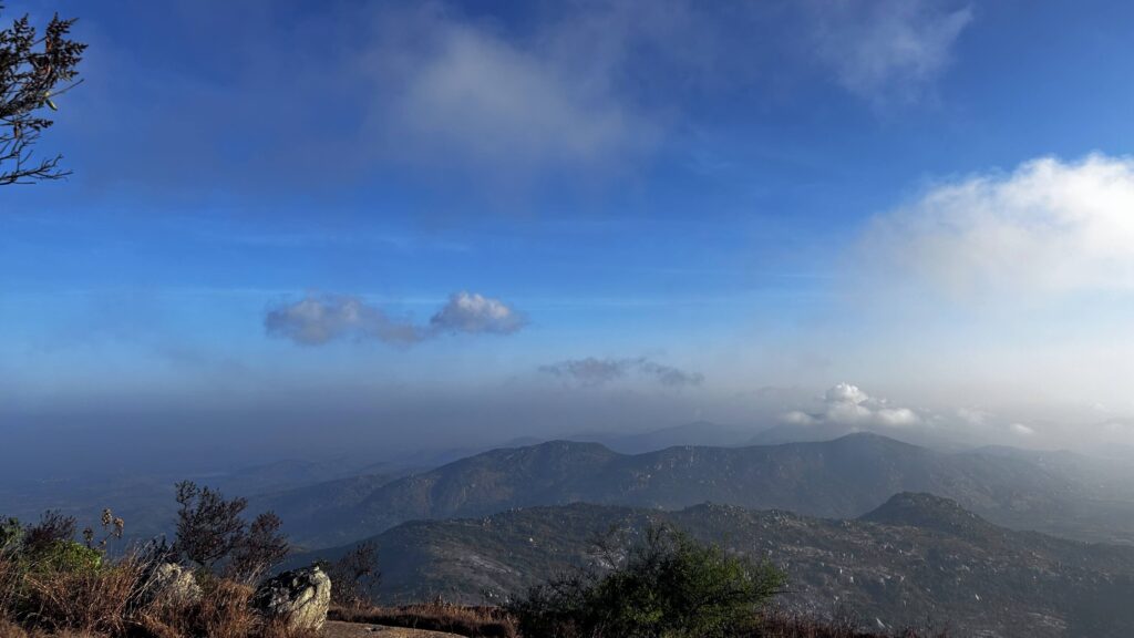 Panchagiri – one of the other names by which the district of Chikballapur is known by as it is surrounded by 5 picturesque hills – Nanda Giri (Nandi hills), Brahma Giri, Hema Giri, Skandagiri and Chandra Giri (Channagiri). Of the 5 hills, Skandagiri is the most well known for its night trek which starts at 4 AM. The Skandagiri mountain falls under the Karnataka Forest Department, hence, it is mandatory to pre-book the trek. A maximum of 150 trekkers are allowed. There are many sources from where you can do the booking but we booked our trek via Karnataka Eco Tourism website (transport and guide not included) as it was economical. As the trail is well laid out, there is no need to hire a guide. Just follow the herd of trekkers to get the top!
